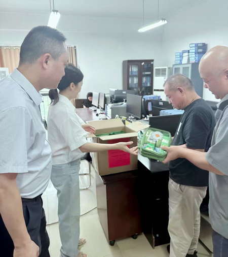 活動(dòng)現(xiàn)場(chǎng),慰問(wèn)組工作人員將防暑物資分發(fā)給員工,并叮囑他們?cè)诟邷靥鞖庀伦鳂I(yè)時(shí)要注意勞逸結(jié)合,做好自我防護(hù),確保安全健康地投入工作。